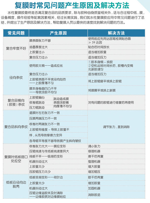 ???本品是乙烯--醋酸乙烯乳液與丙烯酸類乳液性能兼容的合成膠粘劑。涂布后結膜速度合理,復合品干燥時間短,挺度及牢度好,反光率高,忠于原色,無色相飄逸;覆膜膠蓋粉能力合適,干結物易于清洗,復合品耐軋線、砸凹凸和錕花,對燙金、印金、印銀均有較好適應性;適應溫度范圍廣,凍融穩定,結冰解凍后可繼續使用;性價比高,工藝簡單,操作方便。